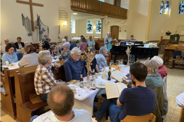 Als sich die letzten Dessertgläser leerten, verteilte Annette Wagner historische Gesangbücher mit vierstelliger Postleitzahl (!) und Volksliedern aus den letzten Jahrhunderten.