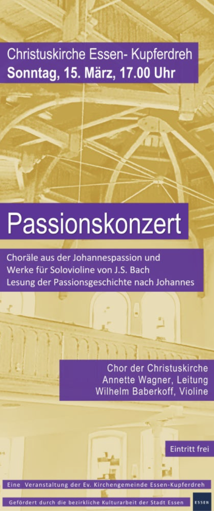 Der Chor singt Choräle aus der Johannespassion, Wilhelm Baberkoff spielt aus den Solosonaten für Violine.
